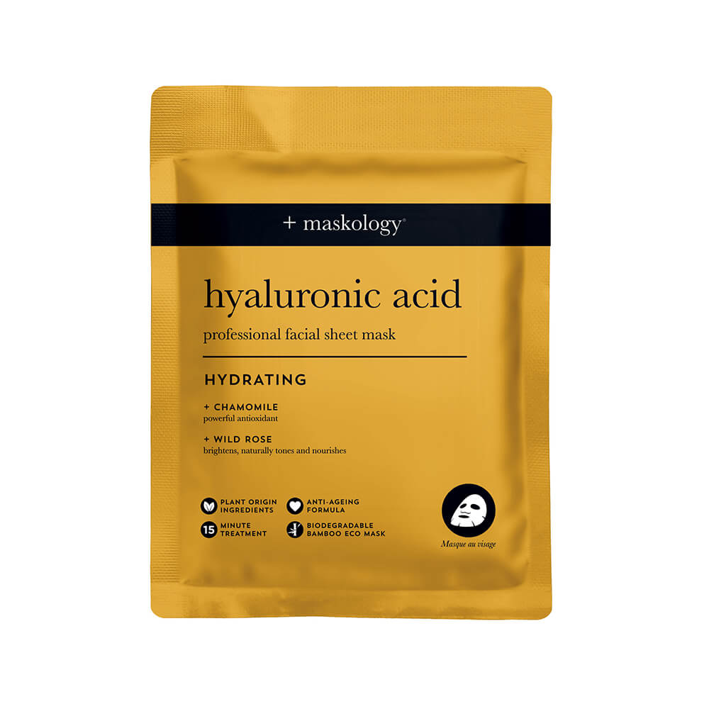Het +maskology HYALURONIC ACID Professional Sheet Mask maakt gebruik van alle natuurlijke ingrediënten om vocht krachtig vast te houden en de huid van diepe voeding te voorzien. Door gebruik te maken van de kracht van soja en kamille, zal de formule de teint genezen, hydrateren en verhelderen.