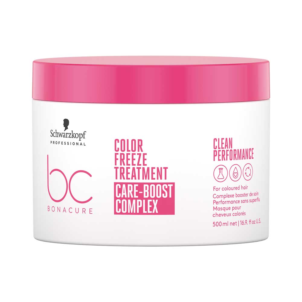 Een intens herstellende, romige behandeling voor gekleurd haar, Bonacure Color Freeze Treatment bevat een vernieuwde formule met de Care Boost Complex die een hoger niveau van verzorging en diepe conditionering biedt, terwijl het haar licht en luchtig blijft.