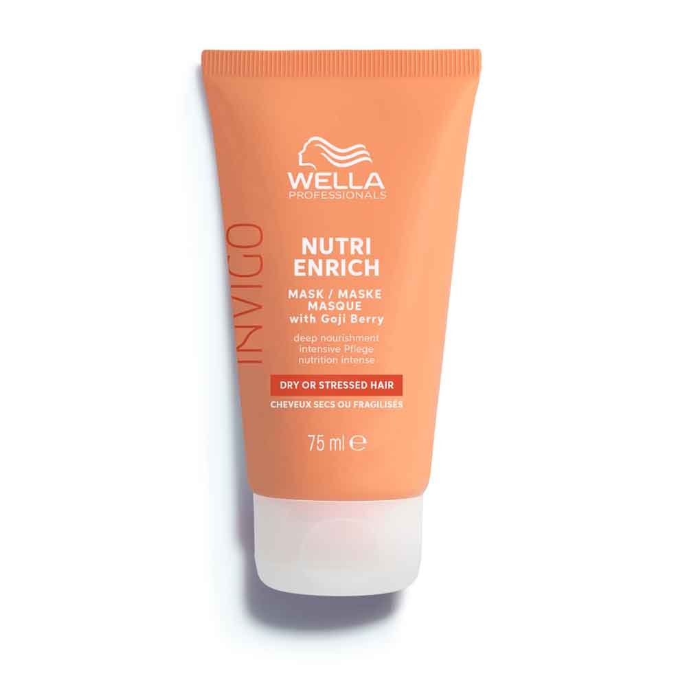Wella Professionals Invigo Nutri Enrich Mask is een intensief voedend en hydraterend haarmasker voor droog en beschadigd haar. Geformuleerd met Nutri-Enrich-Blend™ en panthenol om het haar te hydrateren en te voeden, voor meer zachtheid, glans en vitaliteit. Dit haarmasker is verrijkt met goji bes, een ingrediënt dat rijk is aan vitaminen, mineralen en peptiden en helpt direct frizz te verminderen door het haar glad te maken. Gebruik naast het masker ook de Nutri Enrich shampoo en conditioner voor het beste resultaat.