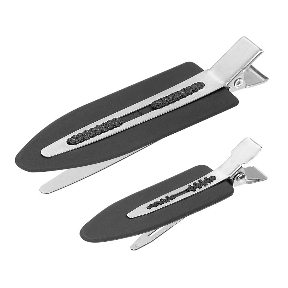 <ul><li><ul><li>Haarzettingsclips die geen vouwen of bochten in het haar achterlaten door de plastic platen op de clips</li><li>Clips van geplateerd metaal</li></li><li>De plastic vellen op de clips zijn geruwd/van mat materiaal voor optimale grip</li><li>Verpakt per 4 stuks/zakje: 2 stuks klein = 60mm + 2 stuks groot = 80mm</li></ul></li></ul>