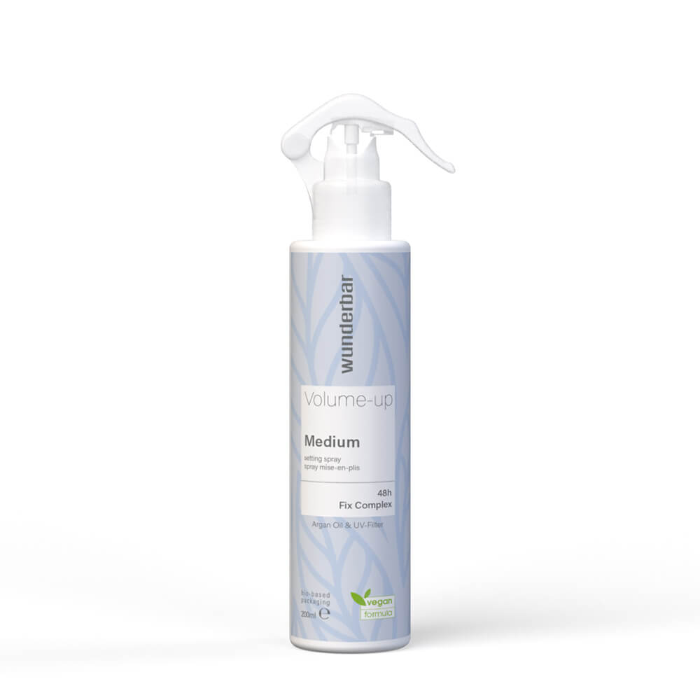 De Wunderbar Vegan Volume-Up Spray maakt deel uit van het gamma vegan haarproducten en geeft het haar maximaal volume direct vanaf de haaraanzet en maakt het haar handelbaar. De lichte formule heeft vele voordelen, waaronder een gemiddelde fixatie die het haar niet verzwaart. Ze biedt ook bescherming tegen statisch haar, zodat je het makkelijk kunt doorkammen. Het 48h-Fix Complex met stylinggeheugen maakt het mogelijk het haar te restylen.