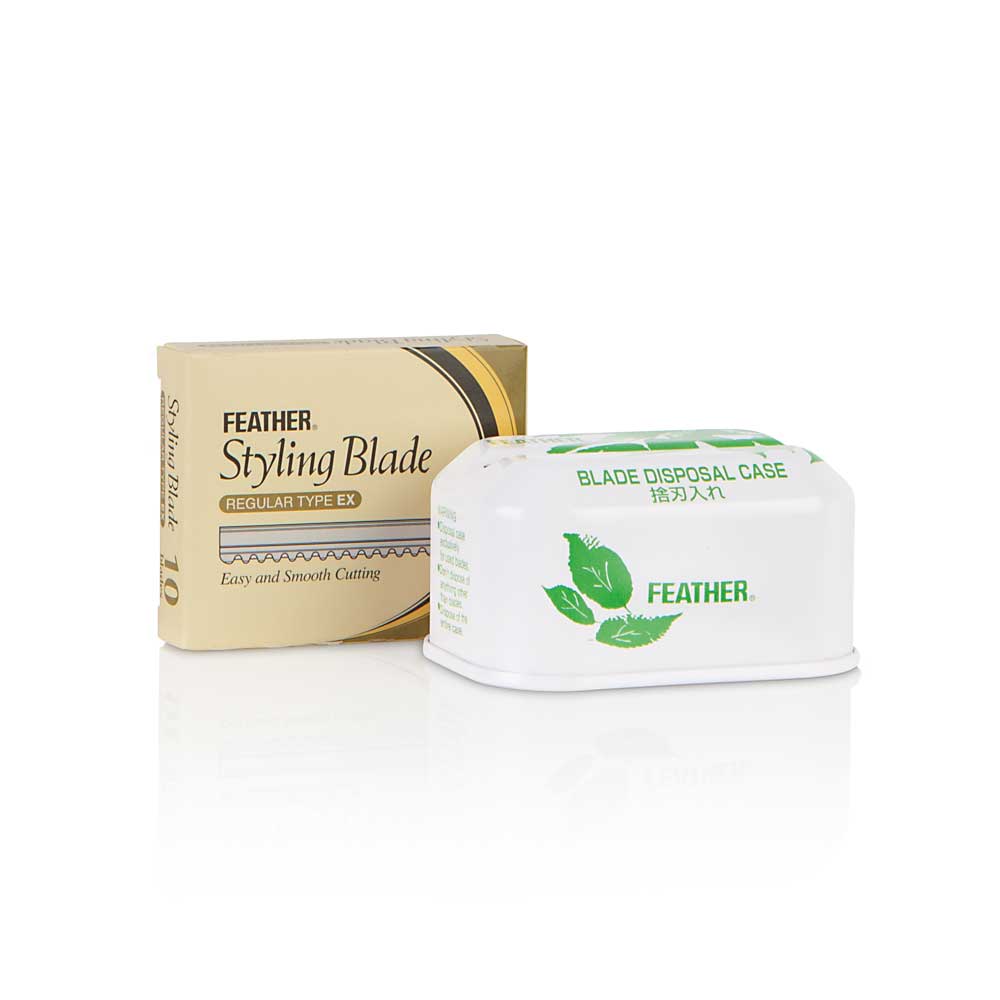 Doos met 5 cases, elk met 10 messen voor het Feather effileermes. De snijbreedte van type EX-messen is 2 mm, wat een snijverhouding van 100% inhoudt.