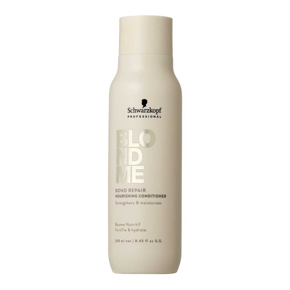 BLONDME Bond Repair Nourishing Conditioner met BOND REPAIR TECHNOLOGY ontwart en voedt blond haar onmiddellijk zonder het te verzwaren en geeft het haar een gehydrateerd gevoel. Het versterkt het haar door innerlijke haarbanden op te bouwen en herstelt schade die gelijk staat aan twee oplichtingsbehandelingen na slechts één gebruik. De voedende formule is verrijkt met amandelolie en witte thee, maakt het haar glad en laat het soepel aanvoelen met een gezond uitziende glans.